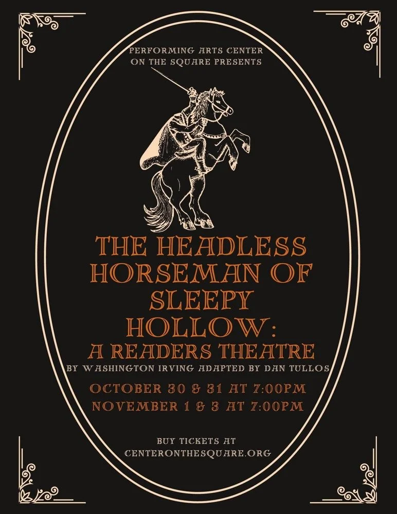 The Headless Horseman Friday, November 3, 2023 7:00 PM 9:00 PM Performing Arts Center on the Square (map) Google Calendar ICS Learn more
